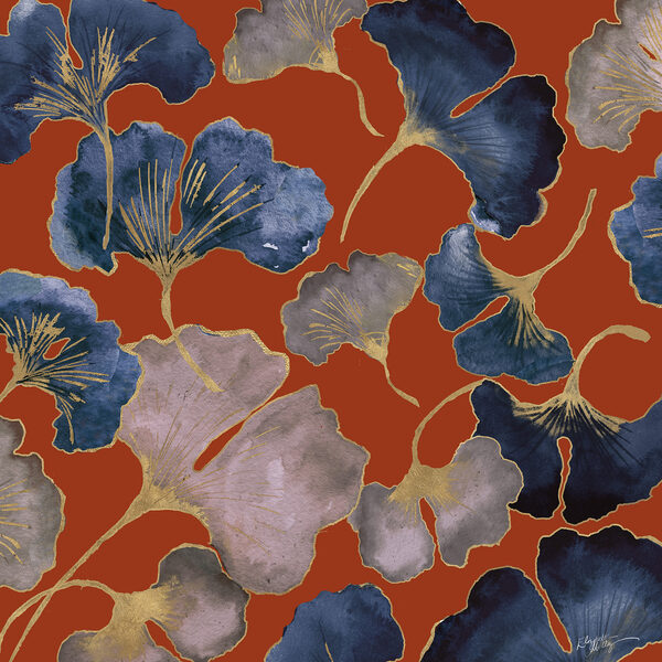 20157F - Gingko Leaves on Red I